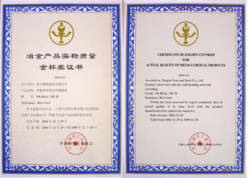 Wire ML08AL and ML35 for cold forging awarded the Gold Cup Prize of Metallurgy products.