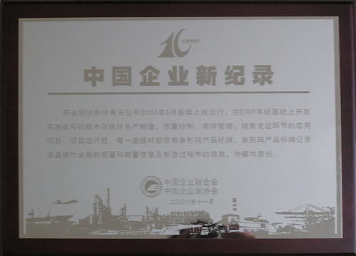 Xingtai Steel won the title of HR Management Outstanding Enterprise of China in 2006.