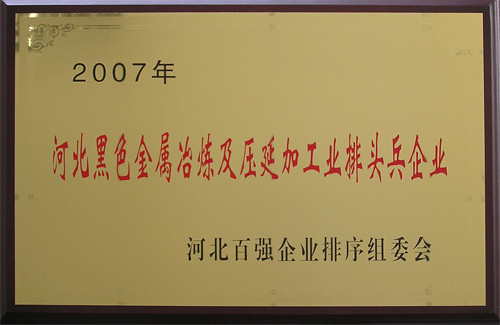 2007年12月,邢鋼獲“河北百?gòu)?qiáng)企業(yè)”榮譽(yù)稱號(hào)。