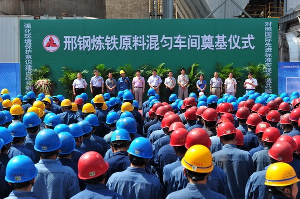 6月9日上午,邢鋼在煉鐵廠原料混勻車間舉行了全封閉式料場奠基儀式?;靹蛄蠄鋈忾]工程是邢鋼2015年實施的14項環(huán)境深度美化治理重點項目之一,邢鋼還將進(jìn)一步實施噴吹煤全封閉料倉、無組織揚塵面源封閉、廠容廠貌深度治理等一系列環(huán)保項目。