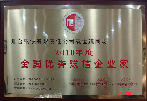 - 邢鋼榮獲“中國質(zhì)量誠信企業(yè)”獎牌