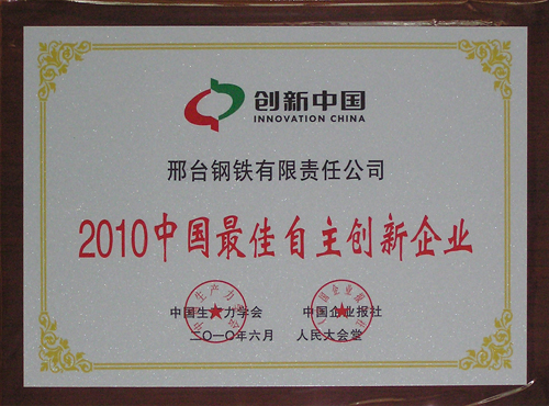 - 邢鋼榮獲“2010中國(guó)最佳自主創(chuàng)新企業(yè)”稱號(hào)