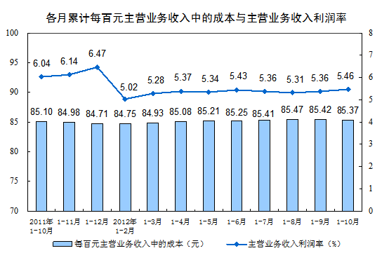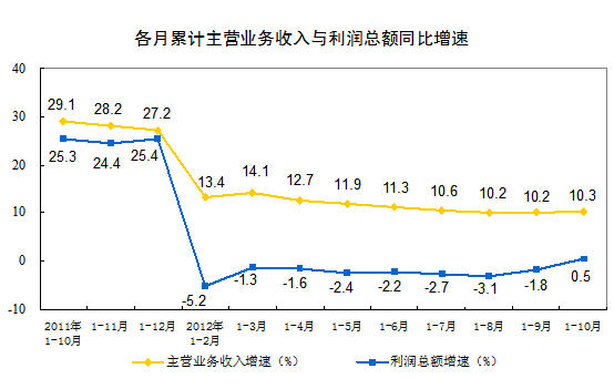 1-10月份全國規(guī)模以上工業(yè)企業(yè)實(shí)現(xiàn)利潤同比增長0.5%