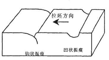通過對(duì)不同連鑄條件下鑄坯表面撮痘進(jìn)行金相分析,最常見的振痕形態(tài)基本上可分為兩種:凹陷狀振痕和鉤狀振痕,其典型的形貌如下圖所示。