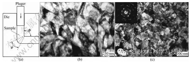 在金屬的成形過程中將超大塑性應變應用于一定體積的金屬中以獲得超細晶材料的過程,其本質(zhì)是細晶強化。通過大的塑性變形使材料的位錯密度增加,形成位錯壁,將位錯壁轉化為大角度晶界,從而獲得超細晶組織以及控制形成不同的織構。該技術已經(jīng)在制備各種超細晶材料領域獲得了廣泛的應用。