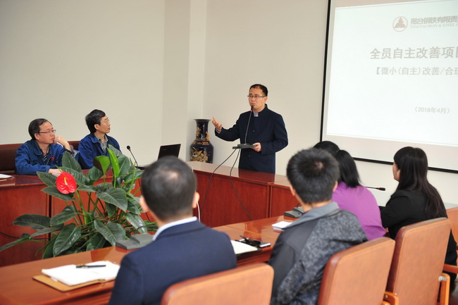 公司全員自主改善精益項目顧問楊智公司聶昌浩作了輔導講話和業(yè)務培訓。重點指出了邢鋼做好全員自主改善項目的重要意義;強調自主改善工作要不斷優(yōu)化,長期堅持;各級管理者要正確引導,把無序的工作變?yōu)橛行虻母纳?;各級評審委員會在做好評審工作的基礎上,要重點做好改善方向的引導。
