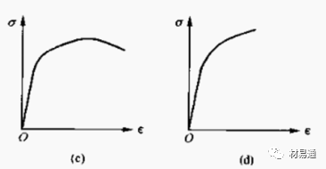 c是淬火后低、中溫回火鋼的應(yīng)力-應(yīng)變曲線,它無(wú)可見(jiàn)的屈服階段,均勻塑性變形后產(chǎn)生縮頸,然后試樣斷裂;