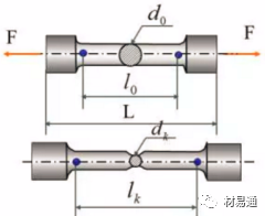 試件拉斷后,彈性變形消失,但塑性變形仍保留下來(lái)。工程上用試件拉斷后遺留下來(lái)的變形表示材料的塑性指標(biāo)。