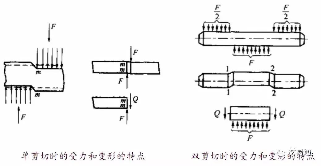作用在試樣兩個側(cè)面的載荷,其合力為大小相等、方向相反、作用線相距很近的一對力,如圖所示: