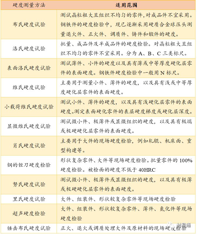 硬度測量方法的使用范圍