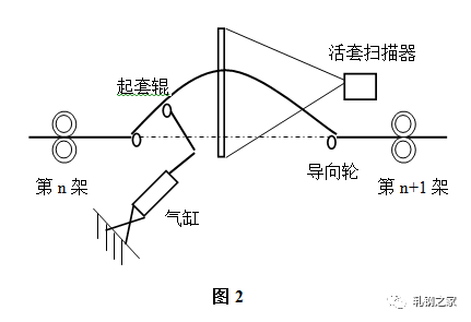 活套是用來(lái)檢測(cè)和調(diào)節(jié)相鄰機(jī)架間速度關(guān)系從而實(shí)現(xiàn)無(wú)張力軋制的設(shè)備?;钐字饕苫钐讙呙杵鳌⑵鹛纵伡捌湔{(diào)節(jié)器等組成,結(jié)構(gòu)如(圖2)所示。主要作用是根據(jù)檢測(cè)的套位信號(hào)來(lái)控制上游軋機(jī)的速度,實(shí)現(xiàn)自動(dòng)控制系統(tǒng)。