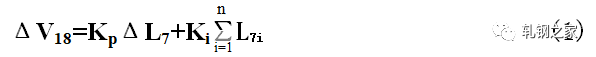 當(dāng)活套一旦形成以后,活套的實(shí)際高度立即由活套掃描器測(cè)得的值經(jīng)過PI調(diào)節(jié)器,輸出一個(gè)控制信號(hào),通過控制上游軋機(jī),使活套大小得到調(diào)節(jié),使活套保持在設(shè)定的高度范圍。速度調(diào)節(jié)量是按逆流調(diào)速的方法,按同樣比例對(duì)軋機(jī)的工作速度進(jìn)行級(jí)聯(lián)調(diào)節(jié)。假如活套L7出現(xiàn)高度差為ΔL7,則V18機(jī)架的速度調(diào)節(jié)是: