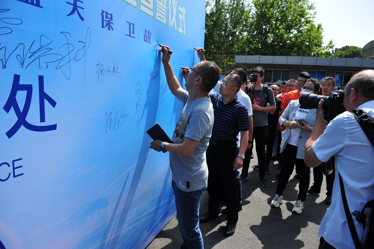 宣誓儀式上,還開展了“美麗中國 我是行動者”主題簽名活動,來賓和公司領導向環(huán)保宣傳車司機代表發(fā)放了車貼。