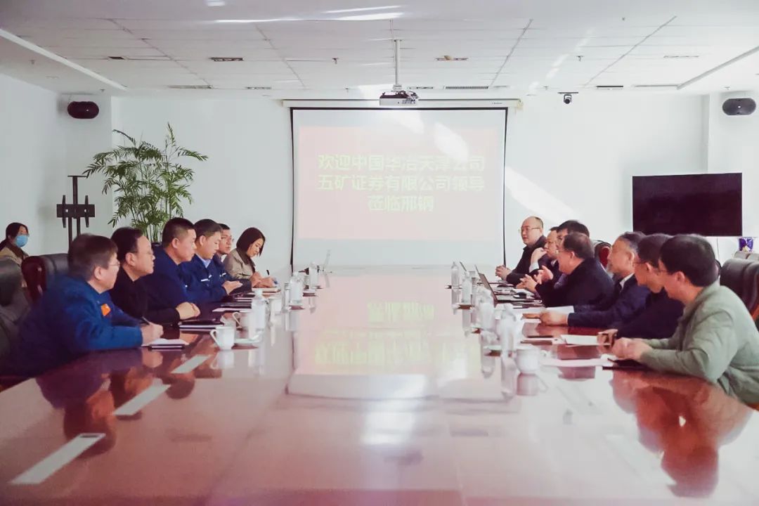 在熱烈、友好的融洽氛圍中,邢鋼公司領(lǐng)導(dǎo)張育明對(duì)中國(guó)華冶天津公司、五礦證券的領(lǐng)導(dǎo)蒞臨邢鋼表示歡迎,并就邢鋼特鋼之路、公司轉(zhuǎn)型升級(jí)項(xiàng)目等做簡(jiǎn)要介紹。他指出,邢鋼專(zhuān)注于工業(yè)用線(xiàn)材,堅(jiān)持實(shí)施精品戰(zhàn)略,已成為國(guó)內(nèi)特鋼工業(yè)線(xiàn)材領(lǐng)域的標(biāo)桿企業(yè)。今后,公司將借力轉(zhuǎn)型升級(jí)搬遷改造的春風(fēng),加快建設(shè)步伐,引領(lǐng)中國(guó)鋼鐵綠色發(fā)展。張育明董事長(zhǎng)表示:希望雙方按照“合作共贏、互利互惠”原則,在技術(shù)、資金、建設(shè)等方面加強(qiáng)合作、共赴美好。