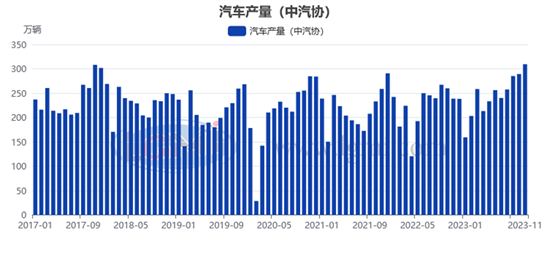 據(jù)中國(guó)汽車工業(yè)協(xié)會(huì)統(tǒng)計(jì)數(shù)據(jù)顯示,2023年11月份,汽車產(chǎn)銷分別達(dá)到309.3萬輛和297萬輛,環(huán)比分別增長(zhǎng)7%和4.1%,同比分別增長(zhǎng)29.4%和27.4%,產(chǎn)銷量連續(xù)3個(gè)月創(chuàng)當(dāng)月歷史同期新高。1-11月,汽車產(chǎn)銷累計(jì)完成2711.1萬輛和2693.8萬輛,同比分別增長(zhǎng)10%和10.8%。