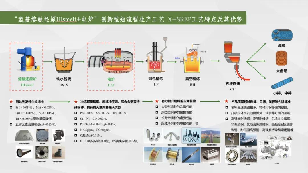 一是布局“碳達(dá)峰、碳中和”,實(shí)現(xiàn)綠色化,引領(lǐng)品牌可持續(xù)發(fā)展。采用的“熔融還原+電爐煉鋼”短流程工藝,取消了燒結(jié)、球團(tuán)、焦化、預(yù)還原等工藝環(huán)節(jié),為世界首創(chuàng);和長(zhǎng)流程工藝相比,預(yù)計(jì)可減少二氧化硫、氮氧化物排放38%,減少顆粒物排放89%,建廠即達(dá)到A級(jí)企業(yè)標(biāo)準(zhǔn),實(shí)現(xiàn)綠色冶金,對(duì)我國(guó)乃至世界鋼鐵行業(yè)發(fā)展具有創(chuàng)新性和引領(lǐng)示范的意義,是鋼鐵行業(yè)綠色轉(zhuǎn)型的典范。