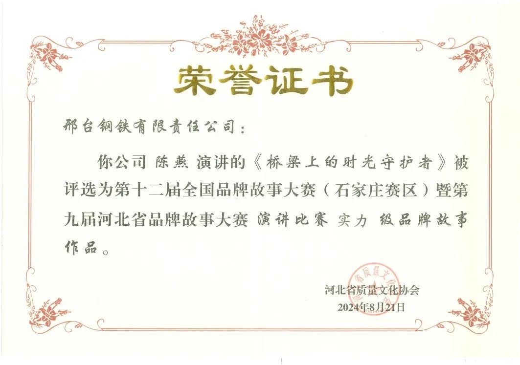 邢鋼獲第九屆河北省品牌故事大賽多項(xiàng)榮譽(yù)
