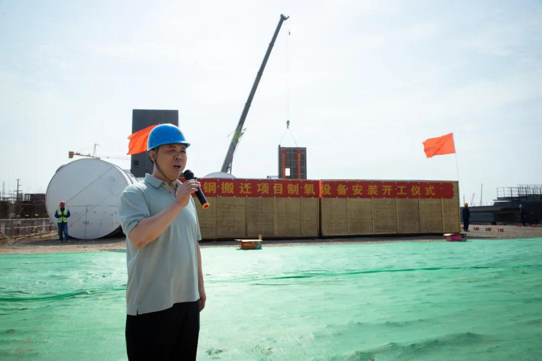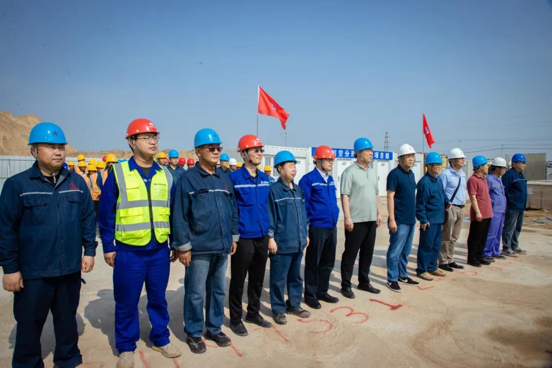 At the passionate project construction site, Zhang Yuming, the company's chairman, Peng Shidan, the general manager, Ma Baoliang, Liu Wanchao, Han Qinglian, the deputy general managers, and representatives of the supervision company and the on-site construction team jointly witnessed the installation of the air separation equipment for the oxygen production project.