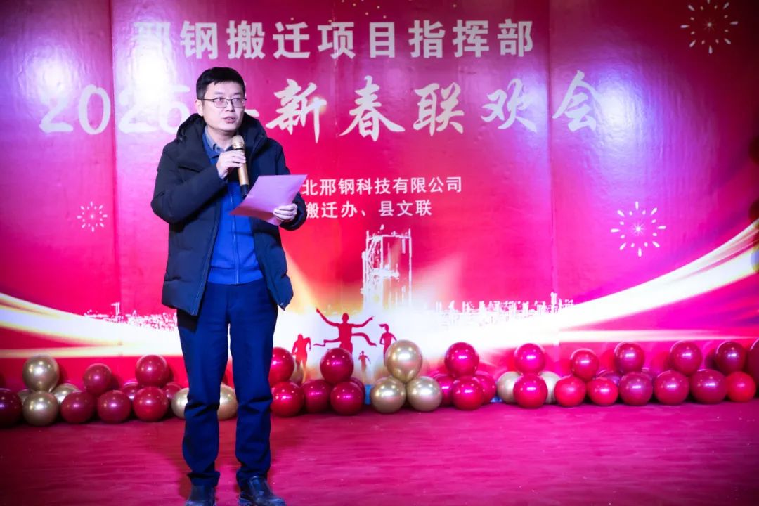 在熱烈、融洽的氣氛中,聯(lián)歡會(huì)拉開(kāi)帷幕。威縣縣委常委、宣傳部長(zhǎng)、搬遷專班班長(zhǎng)白鋒發(fā)表致辭。他代表威縣縣委、縣政府,向所有關(guān)心支持邢鋼搬遷改造項(xiàng)目的各級(jí)領(lǐng)導(dǎo)和參與建設(shè)的同志們表達(dá)了崇高的敬意和衷心的感謝。并高度評(píng)價(jià)了邢鋼人在過(guò)去一年中展現(xiàn)出的團(tuán)結(jié)協(xié)作、頑強(qiáng)拼搏的精神,表示威縣政府將繼續(xù)全力支持邢鋼搬遷項(xiàng)目,推動(dòng)項(xiàng)目早日建成投產(chǎn),為威縣經(jīng)濟(jì)發(fā)展做出更大貢獻(xiàn)。